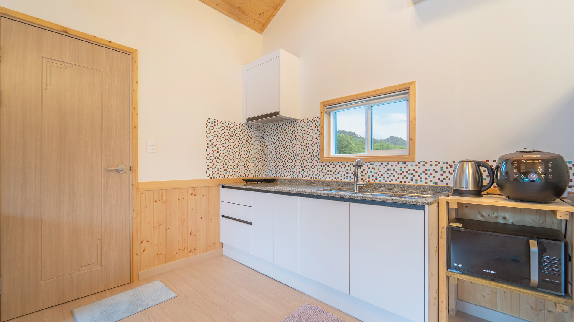- 집기품목 : TV, 냉장고, 드라이기, 샴푸, 린스, 바디워시, 에어컨, 인덕션, 전기밥솥, 전자레인지, 취사시설/도구, 커피포트, 타월, 테라스, 개별바비큐, 욕실용품, VOD
