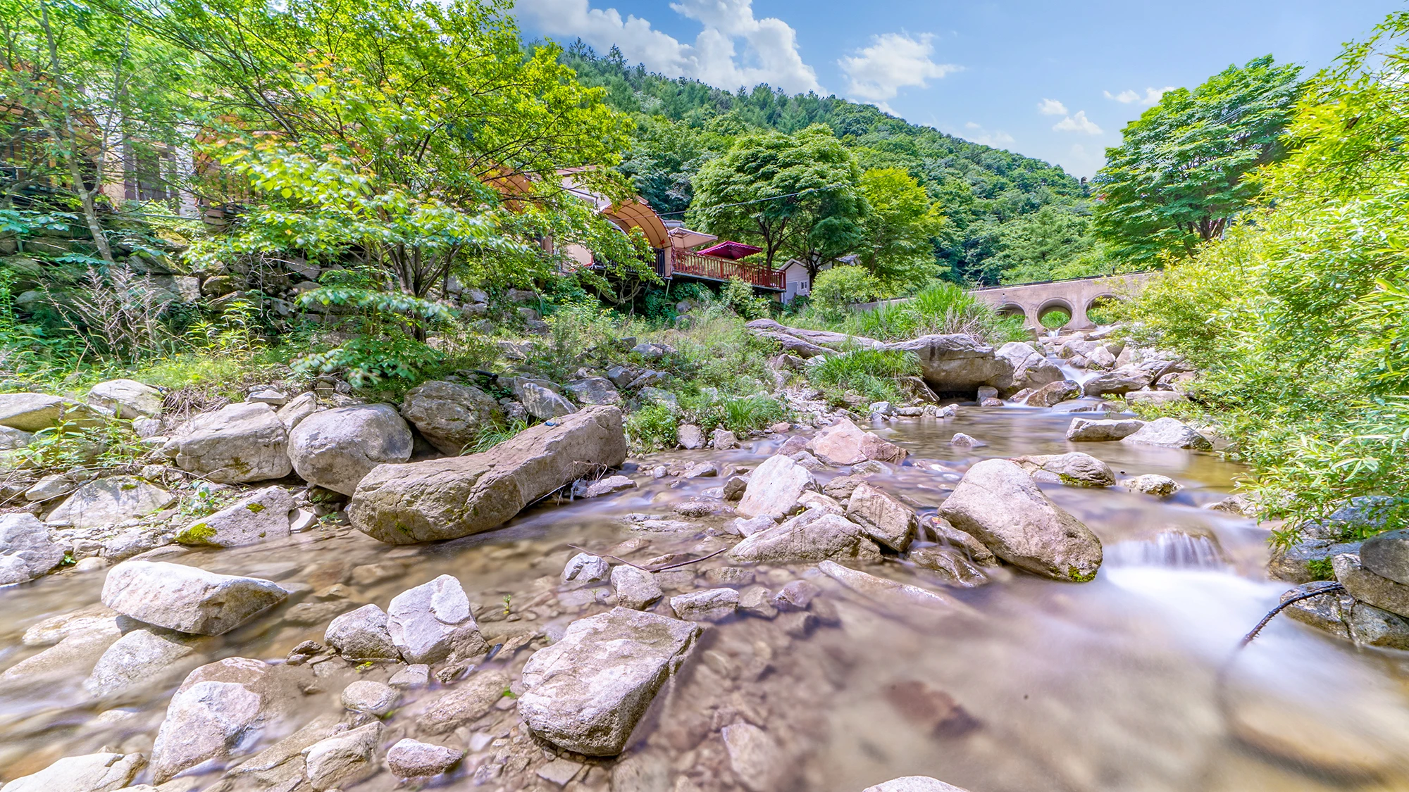 펜션 근처에 맑은 계곡이 위치해 있습니다.